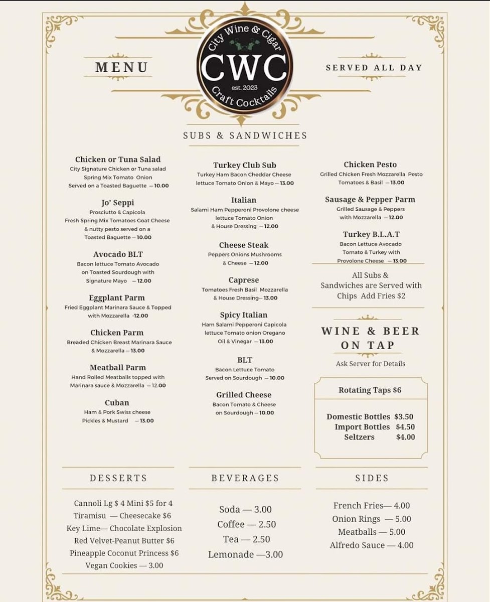 With its inviting ambiance and knowledgeable staff on hand to guide your selections, City Wine & Cigar offers more than just a menu; it presents an immersive experience. Whether you're celebrating a special occasion or seeking a cozy place to unwind, this gem is a must-visit.